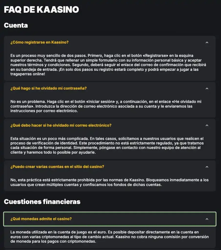 Каждое великое казино нуждается в точке ясности, и FAQ от Kaasino создан именно для этого: прямые ответы, без лишних разговоров. Здесь нет мелкого шрифта или технических тонкостей, только та информация, которая необходима каждому европейскому игроку, прежде чем сделать следующий шаг.